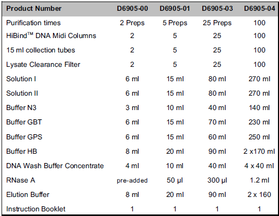 | D6905-04 | Fastfilter Plasmid Midi Kit(100) | 100 Preps/盒 | 4950 |